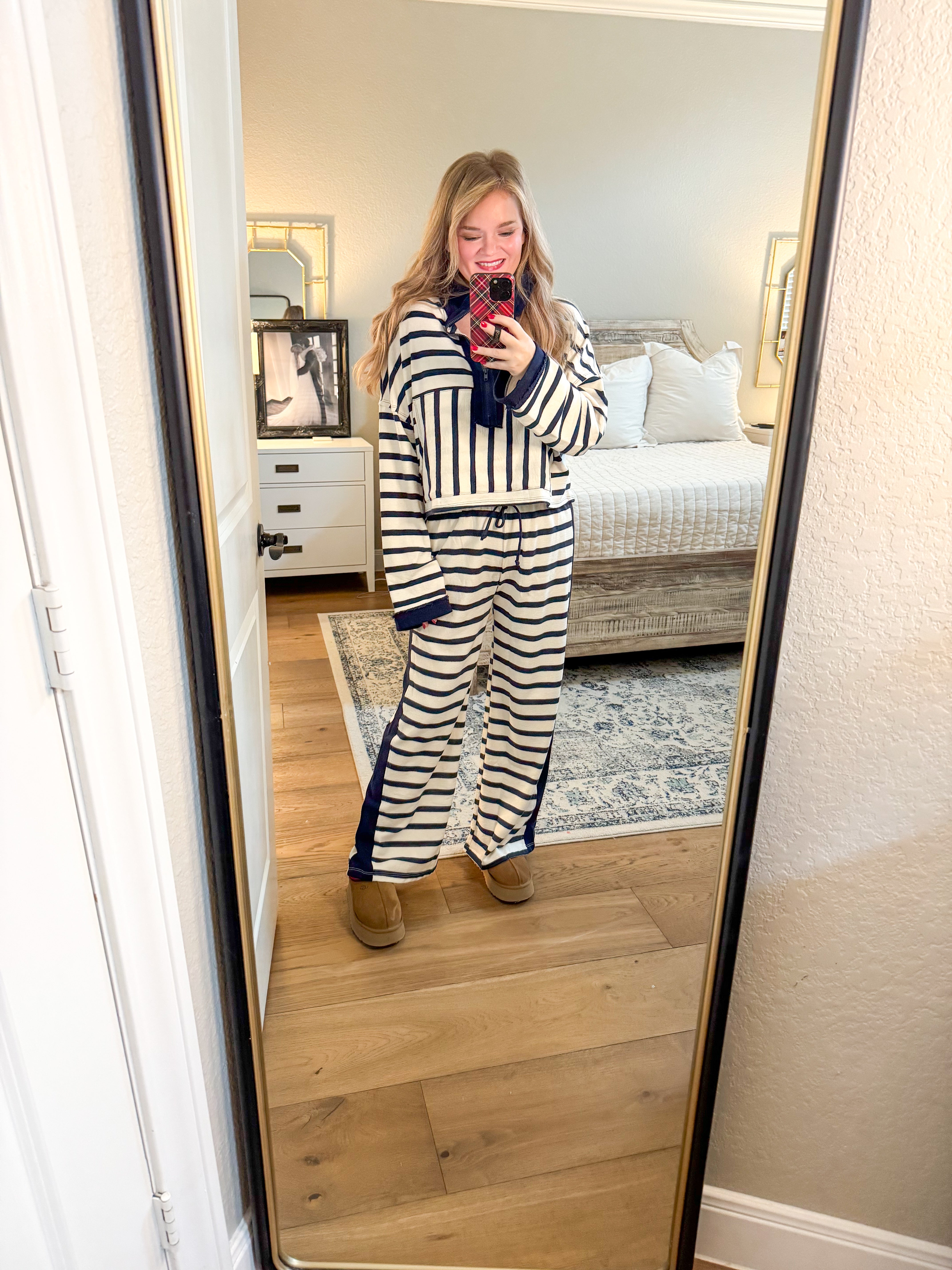 Cream & Navy Striped Half Zip