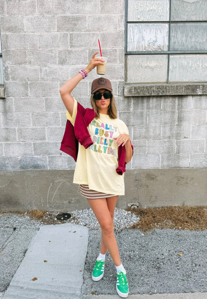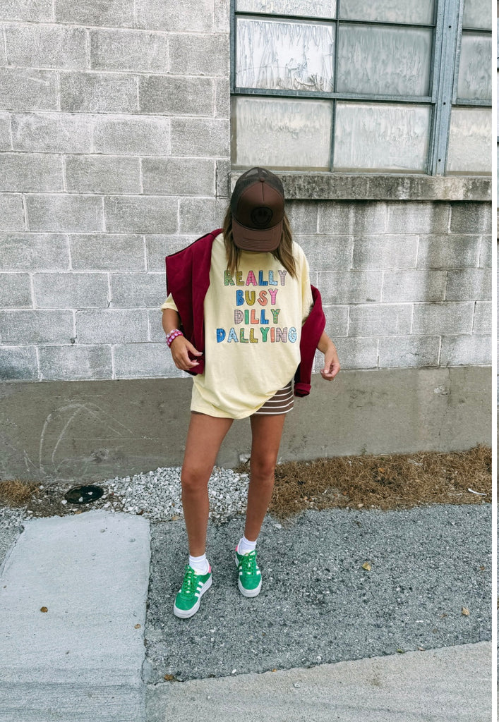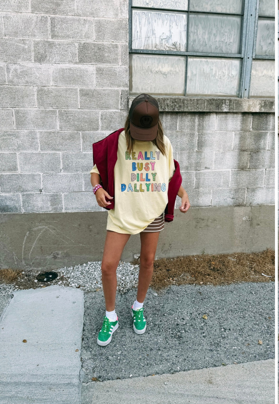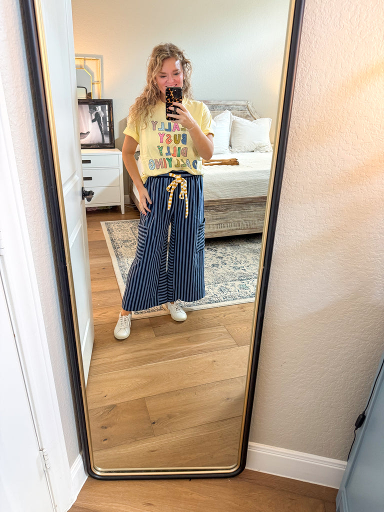 100% comfort colors cotton tee with front graphic. True to size, I am a 6/8 wearing a large.