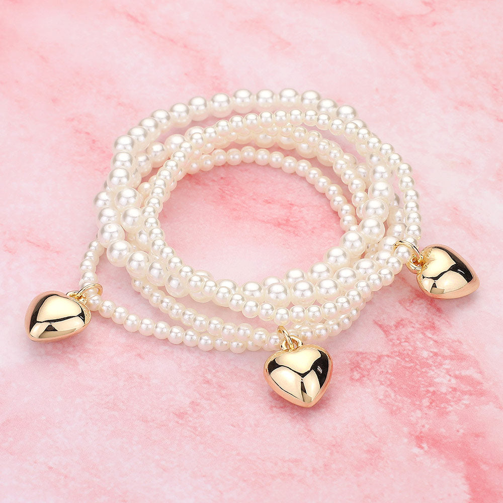 • Wrap your wrist in elegance with this multi-strand beaded bracelet featuring glossy beads and polished heart charms. Stretch design offers an easy fit, perfect for casual wear or romantic occasions. Layered look adds charm and versatility to any outfit.