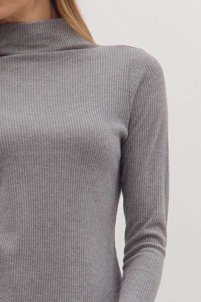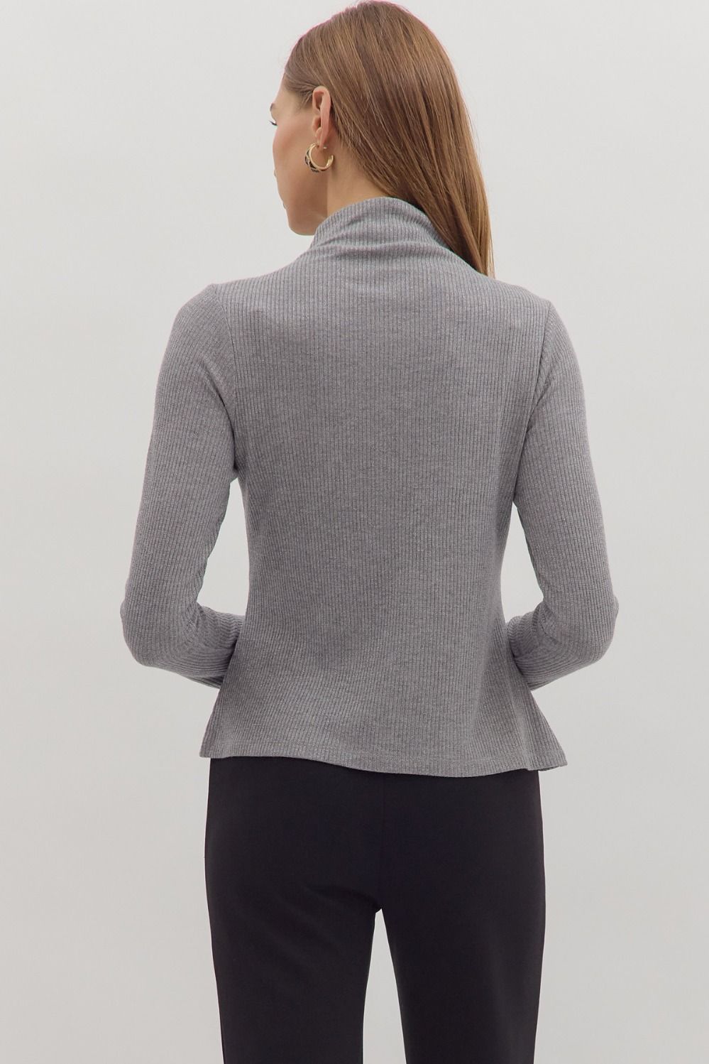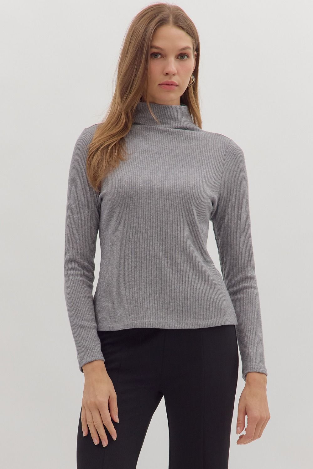 40% rayon, 30% polyester, 15% nylon, 10% Tencel, 5% spandex. Solid long sleeve ribbed sweater knit top featuring mock neck. Unlined, knit, non-sheer, medium weight. True to size, I am a 6 wearing a medium.