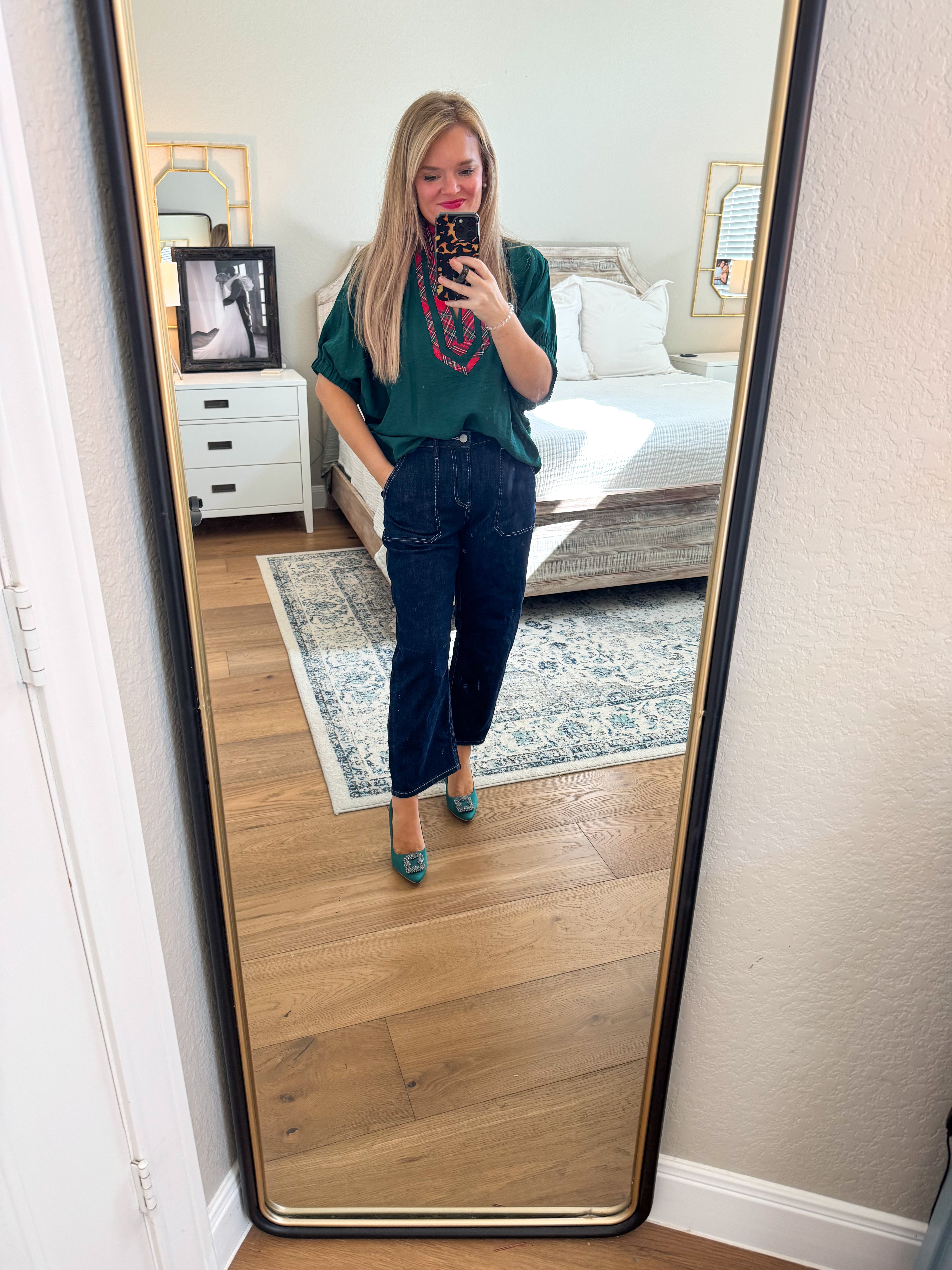 True to size, I am a 6/8 wearing a small. 85% rayon, 15% nylon solid short sleeve dolman top featuring plaid pattern contrast high v-neck band accent. Unlined, woven, non-sheer, lightweight. True to size, I am a 6/8 wearing a small.
