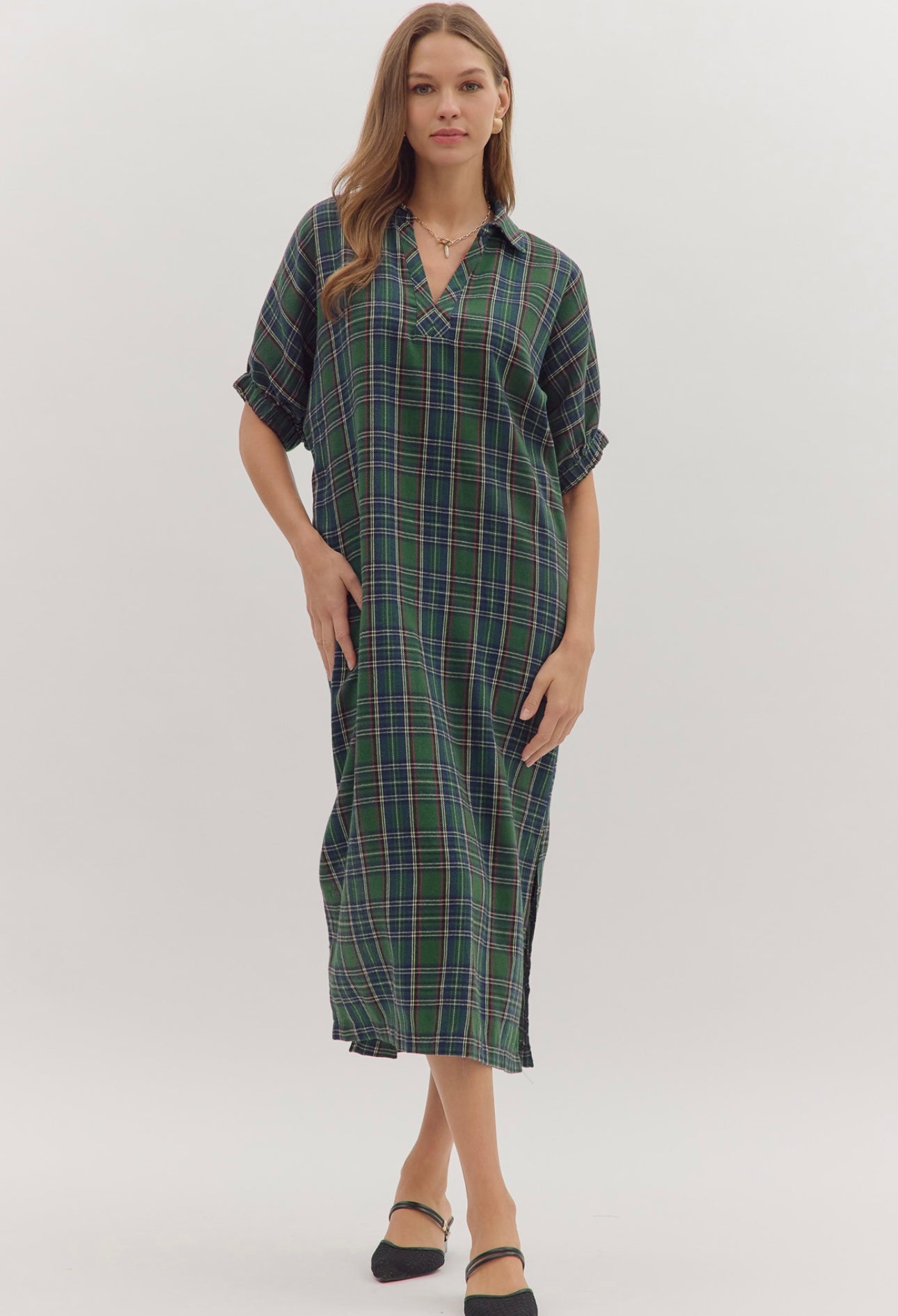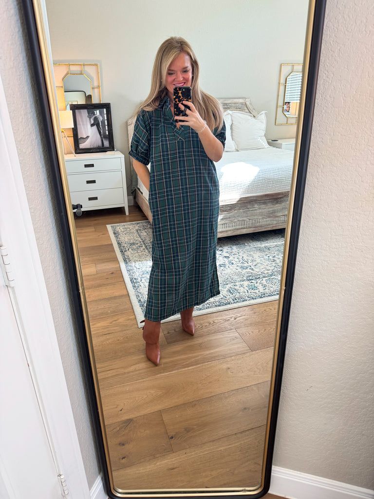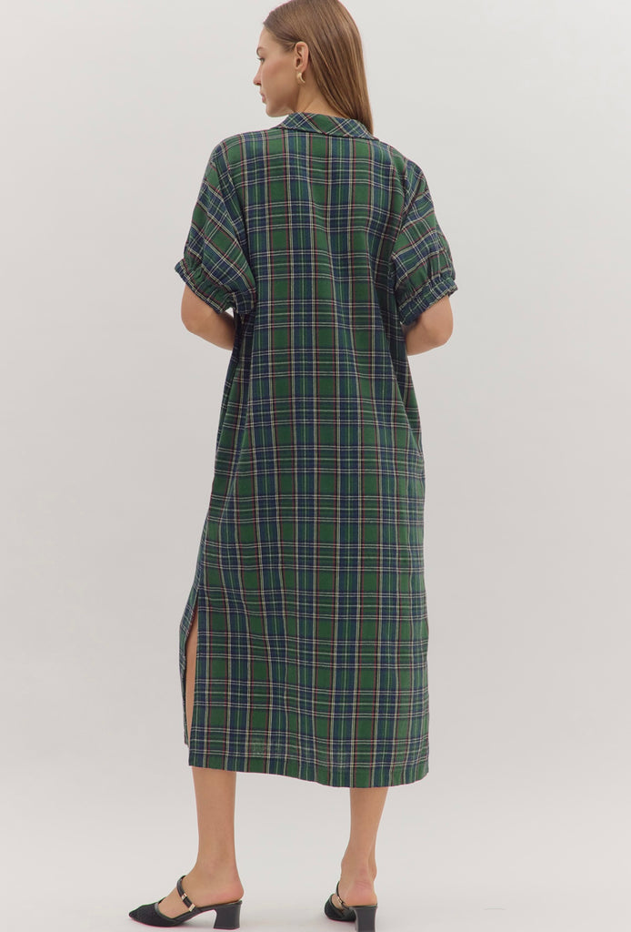 Green Tartan Flannel Midi Dress
