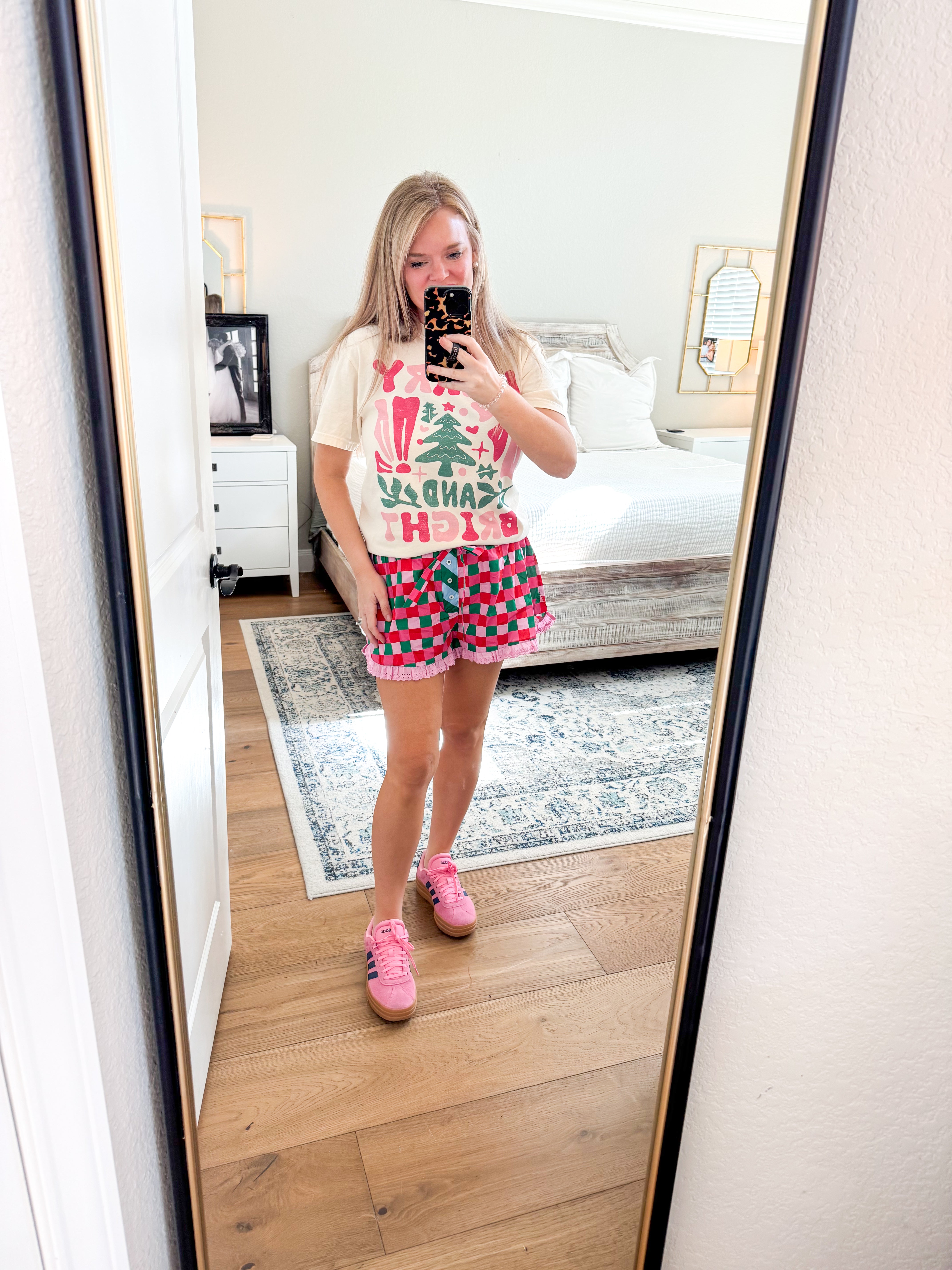 Merry & Bright Tee - Large is backordered and will ship as soon as it is back in stock.