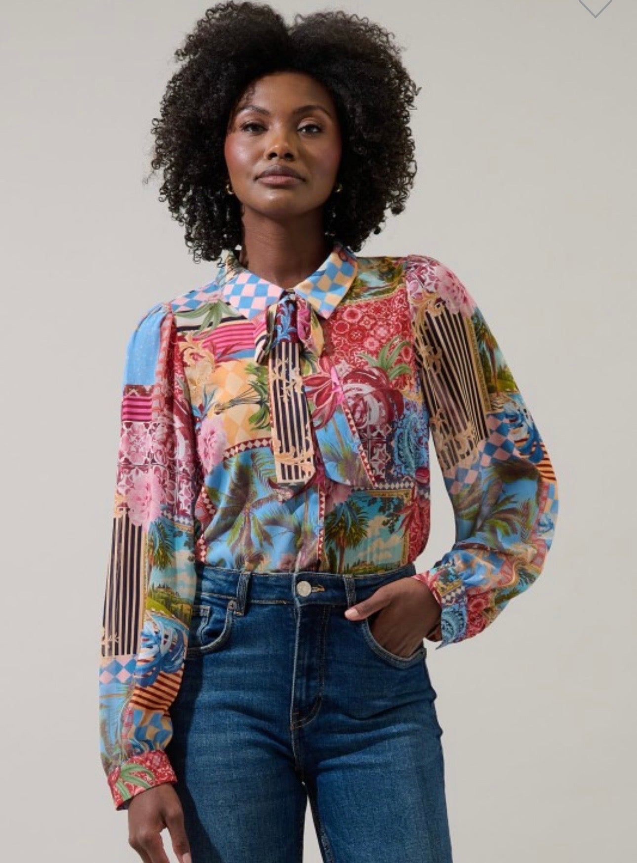 Mixed Pattern Button Down Top