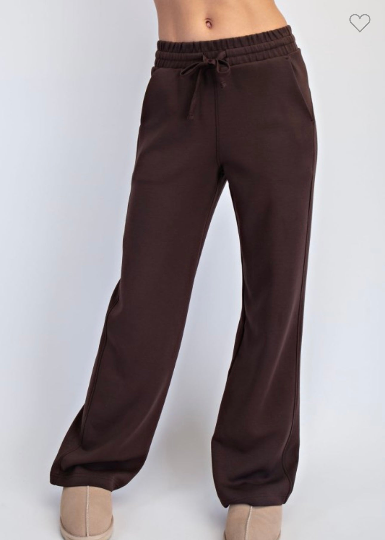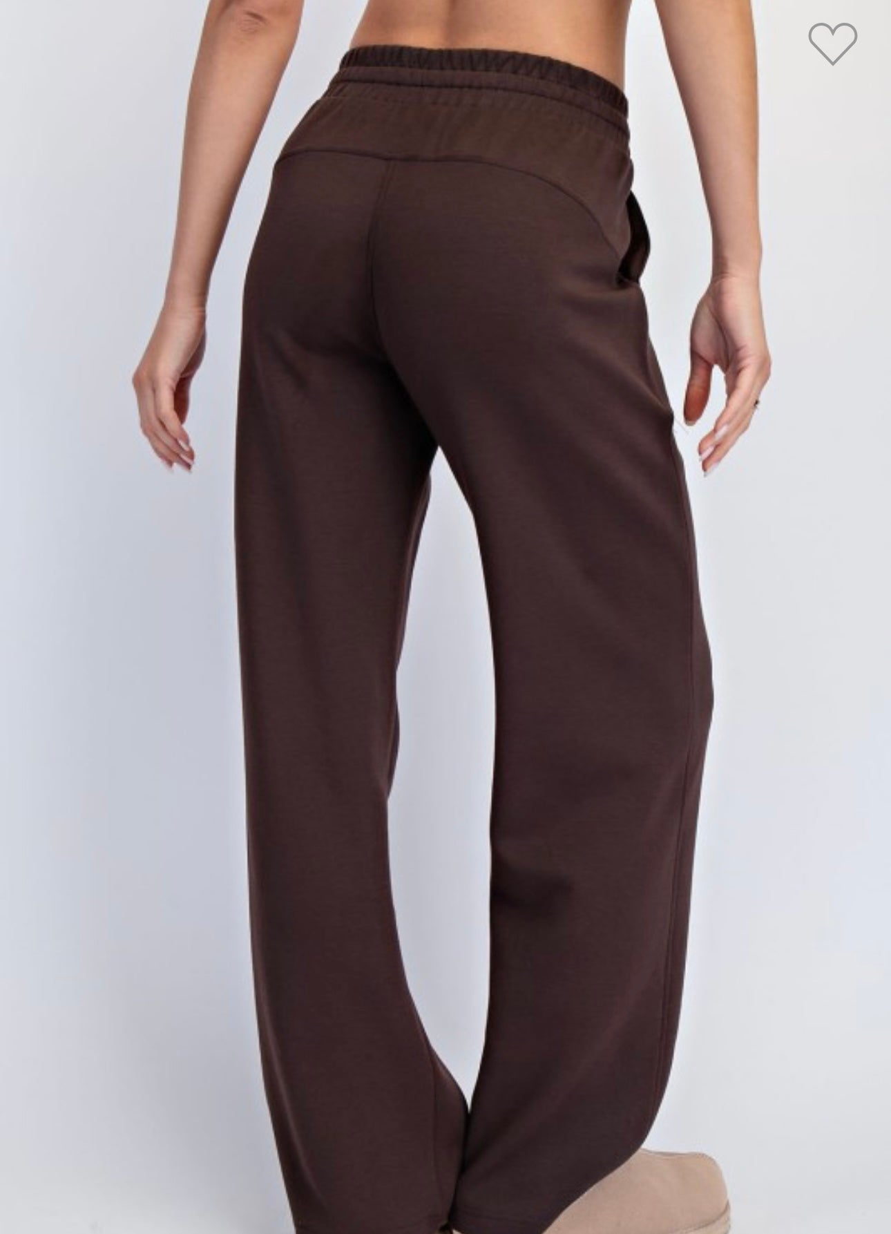 True to size, I am a 6/8 wearing a medium. 48% modal, 45% polyester, 7% spandex. Lightweight modal fabric pants with elastic and drawstring waist. Side pockets, high rise fit. Matching tops sold separately.