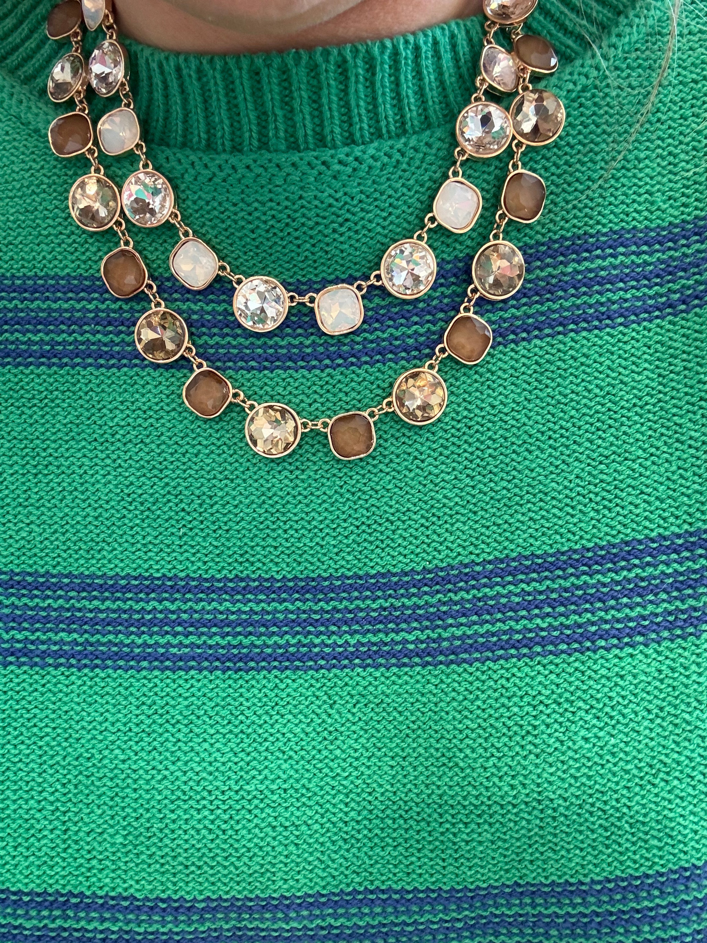 • Elevate your style with this stunning blue stone statement necklace. Featuring alternating deep and light stones, it offers a vibrant touch of elegance, perfect for evening wear, parties, or special occasions. A must-have accessory for modern fashion lovers.