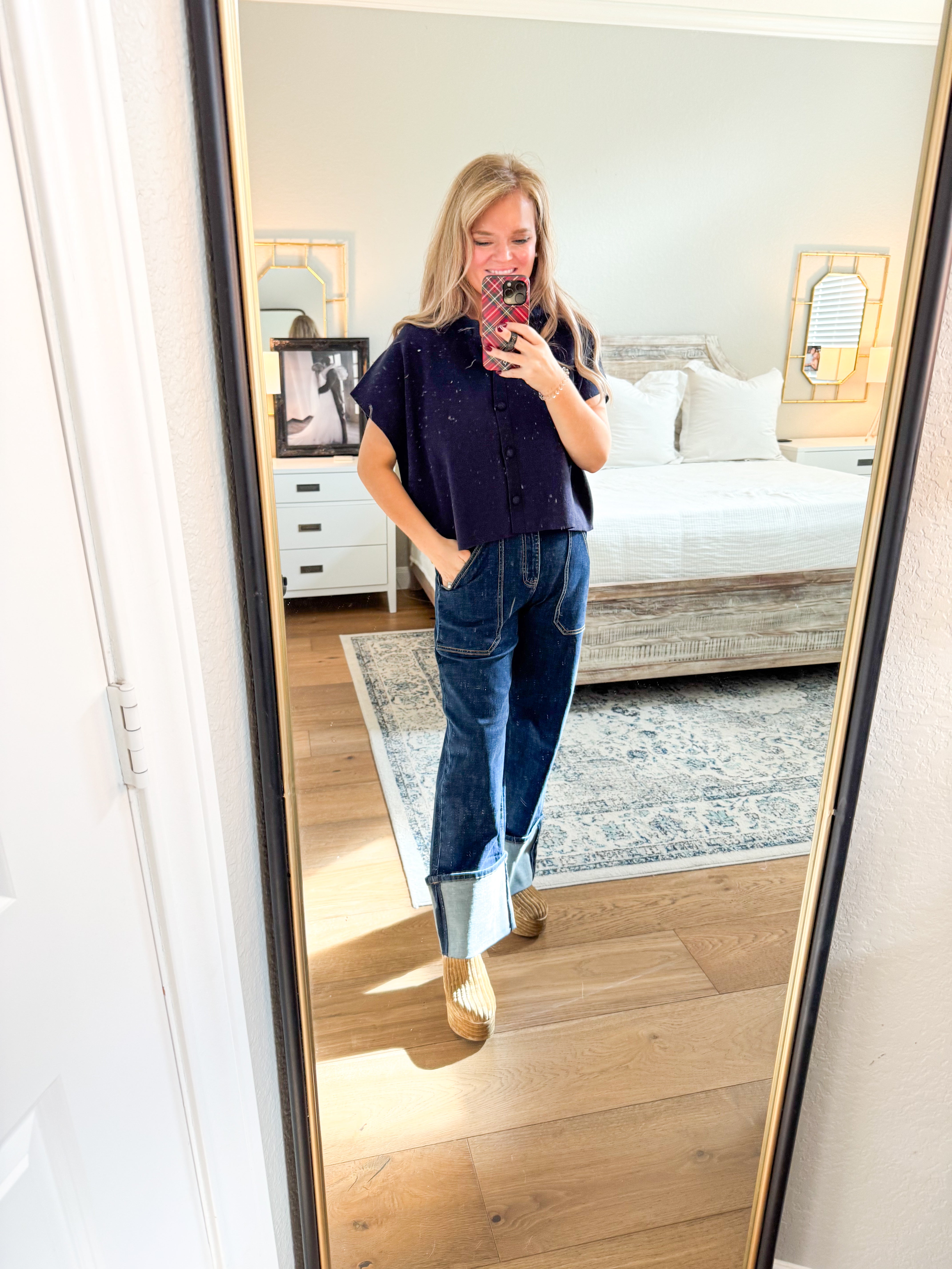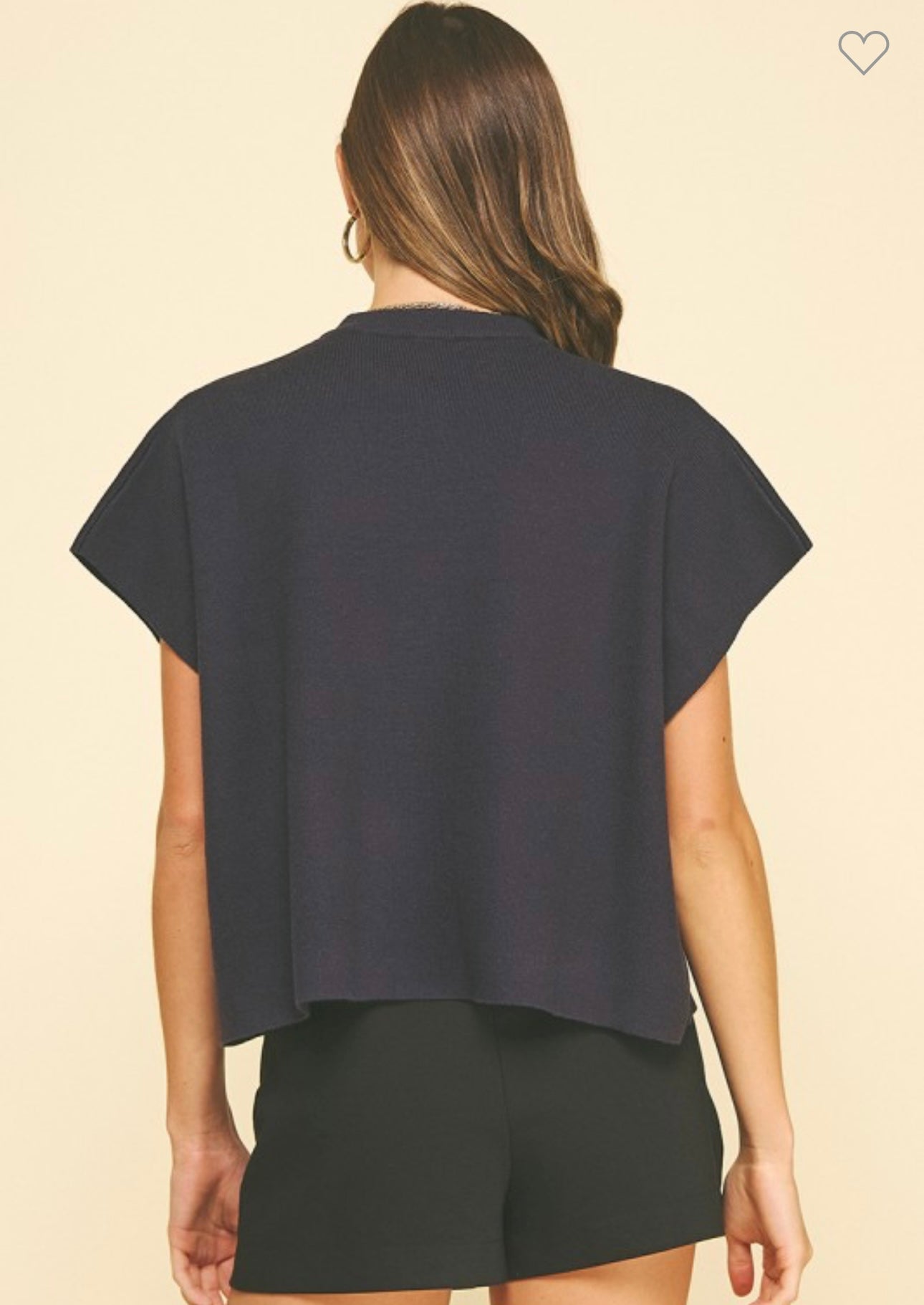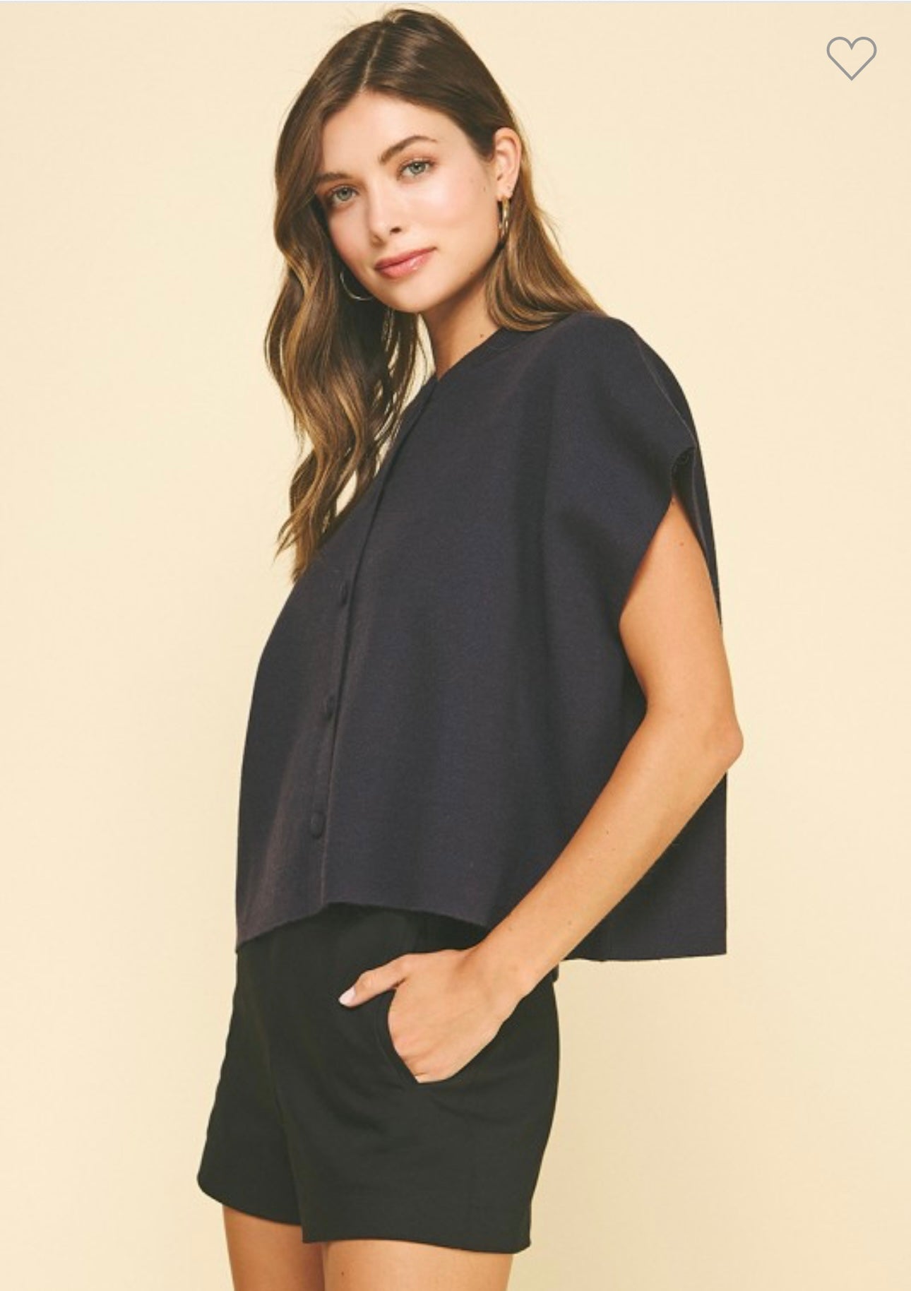 Round neck button down cap sleeve poncho cardigan. True to size, I am a 6/8 wearing a small.