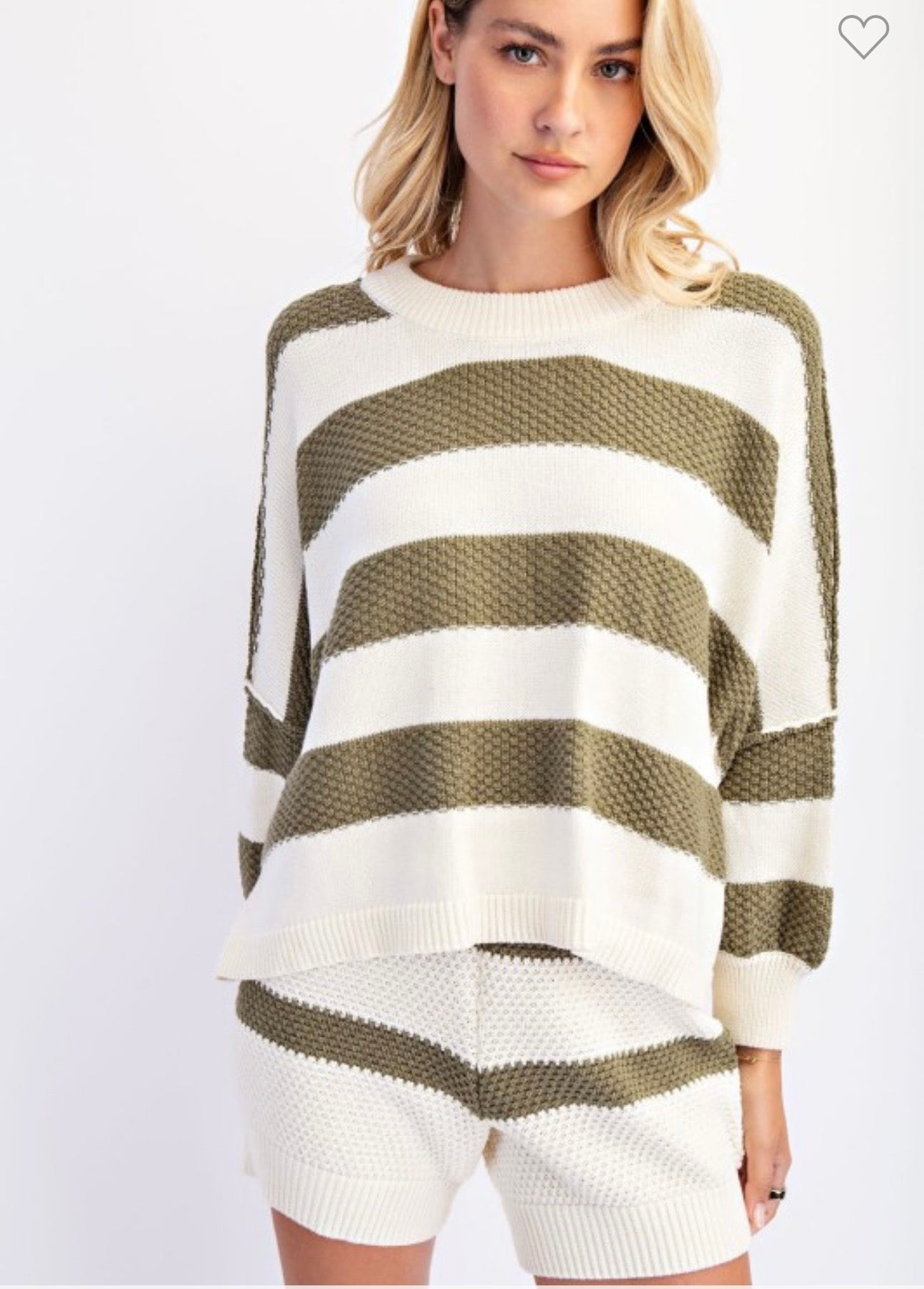 60% COTTON, 40% ACRYLIC 3/4 Cuff Sleeve Oversized Chunky Boxy Knit Sweater Matching shorts sold separately.