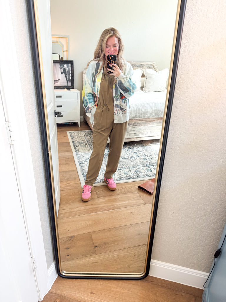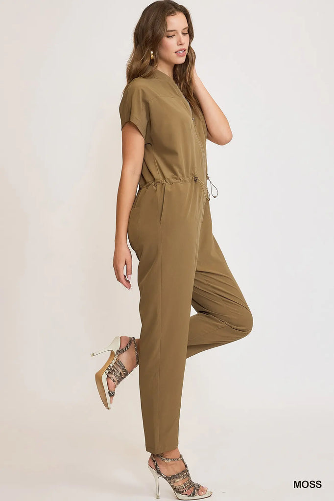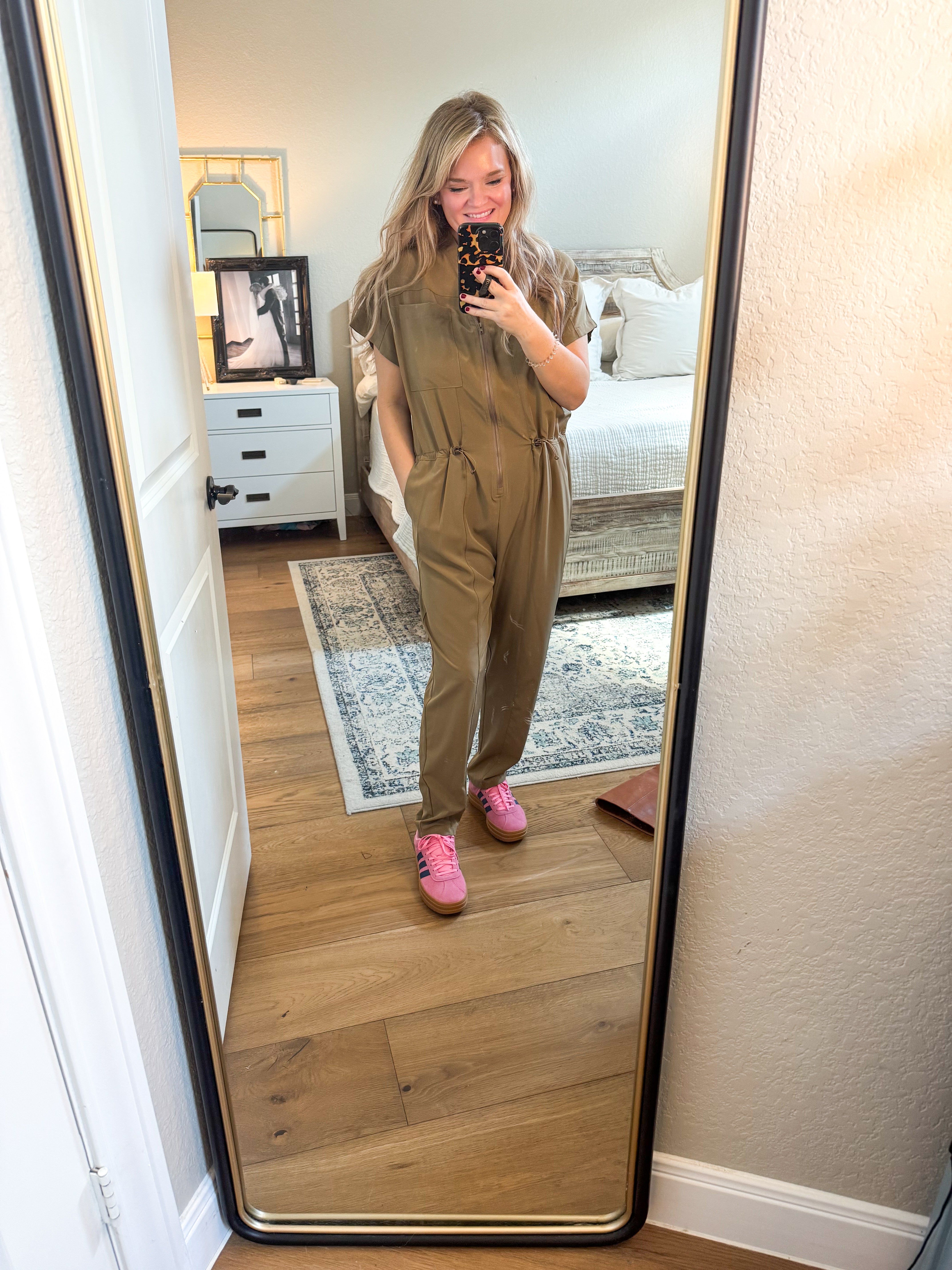 True to size, I am a 6/8 wearing a medium but would prefer a small. 85% polyester, 15% spandex. Drawstring waist, unlined, side pockets.
