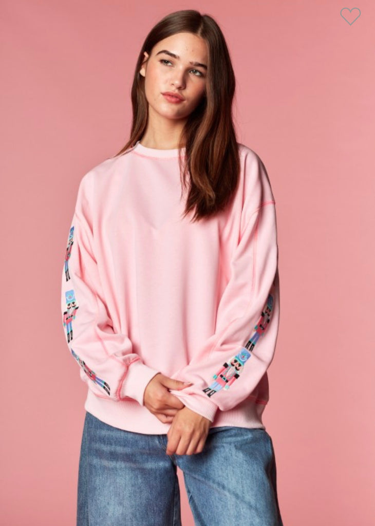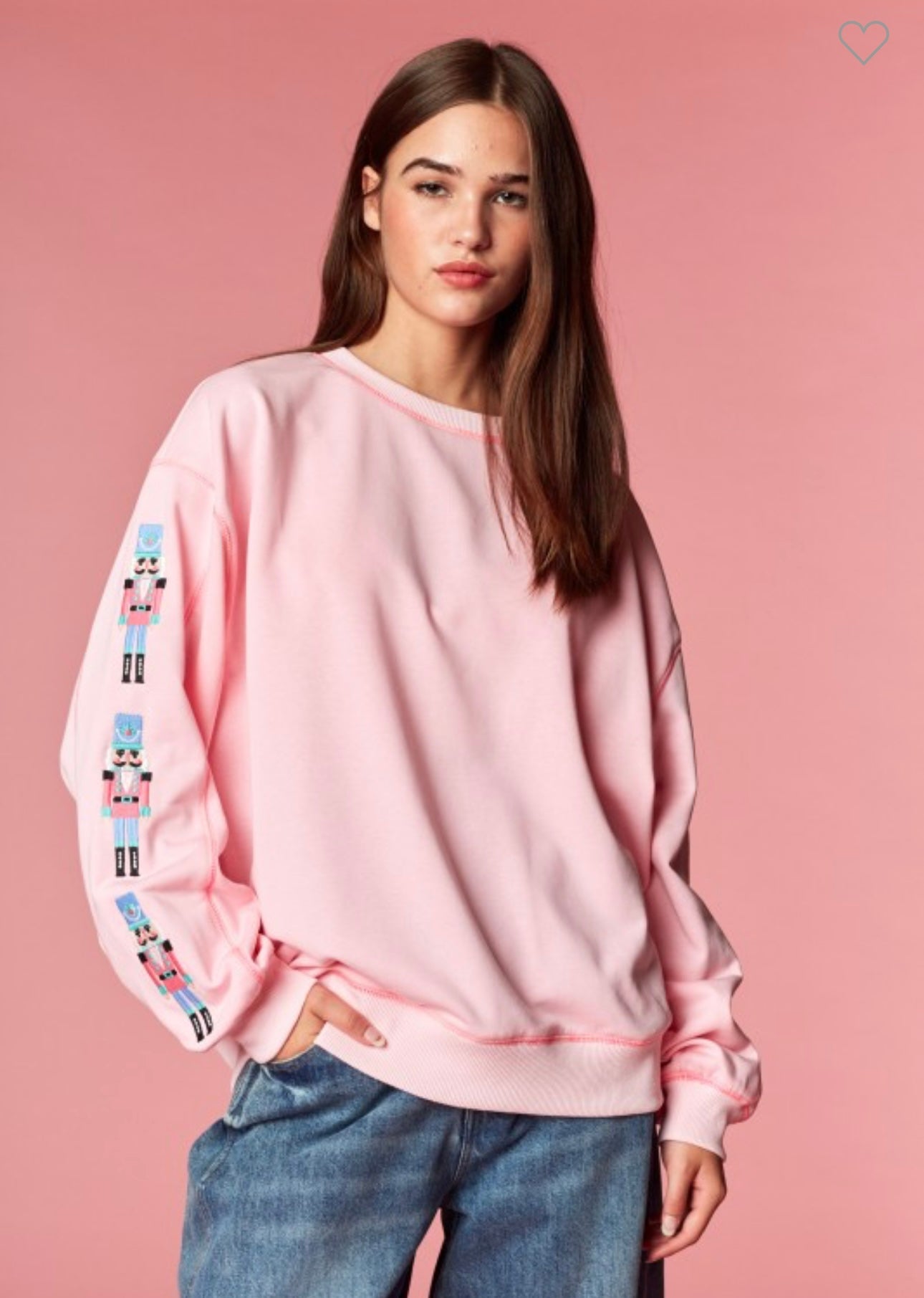 100% cotton relaxed fit. True to size, I am a 6/8 wearing a medium.