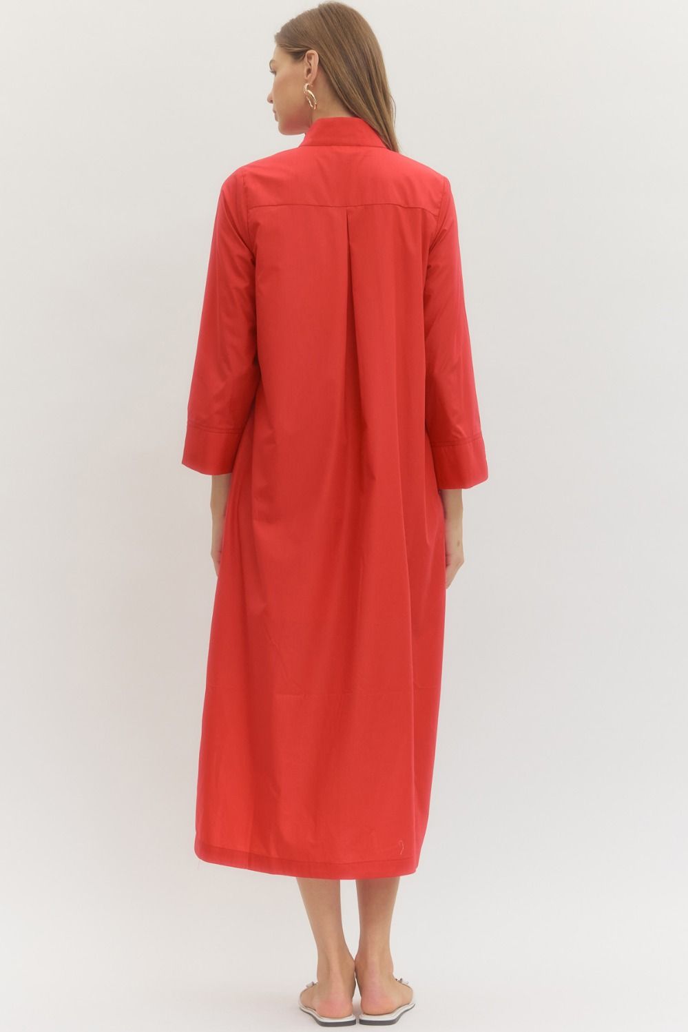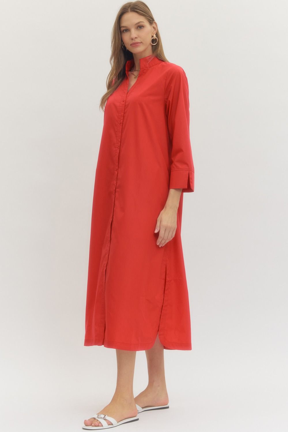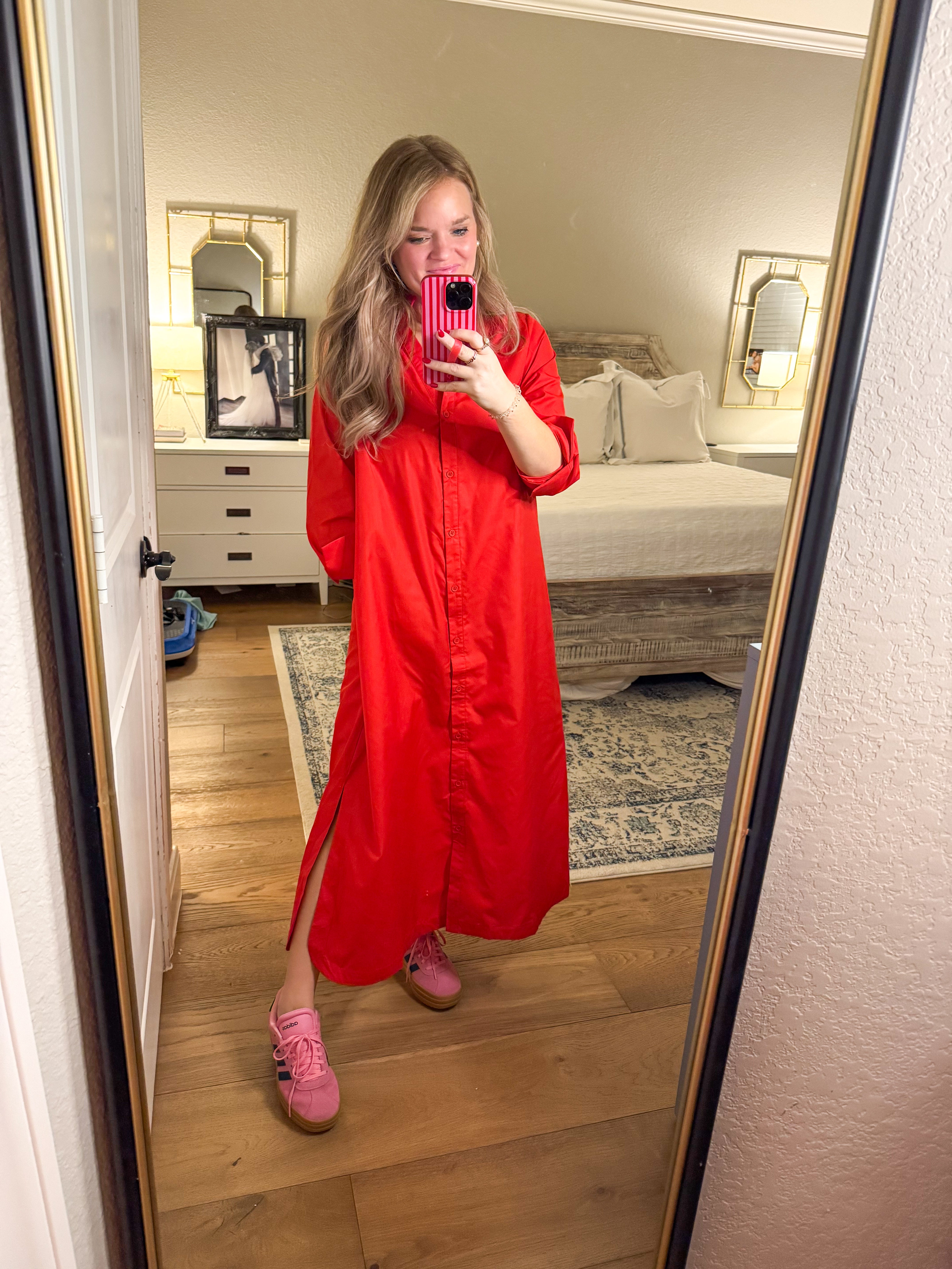 Red Midi Shirt Dress